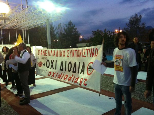 Και πιο πέρα μέλη από το πανελλαδικό συντονιστικό <<ΟΧΙ ΔΙΟΔΙΑ - ΔΕΝ ΠΛΗΡΩΝΩ>>