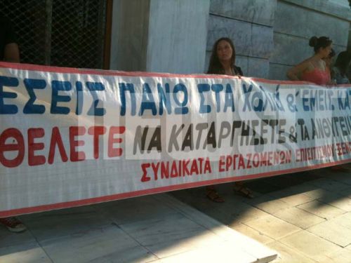 Οι εργαζόμενοι στα ξενοδοχεία και στον επισιτισμό και οι συνδικαλιστές του ΠΑΜΕ διαμαρτύρονται για τις αλλαγές στα Βαρέα και Ανθυγιεινά. Στο πλαίσιο αυτό, η Oμοσπονδία του κλάδου κάνει 24ωρη προειδοποιητική απεργία και συλλαλητήριο, στις 11 πμ στην πλατεία Kλαυθμώνος. Οι συνδικαλιστές δηλώνουν ότι θα κρατήσουν κλειστές τις εισόδους των ξενοδοχείων έως τις 10.30 πμ.