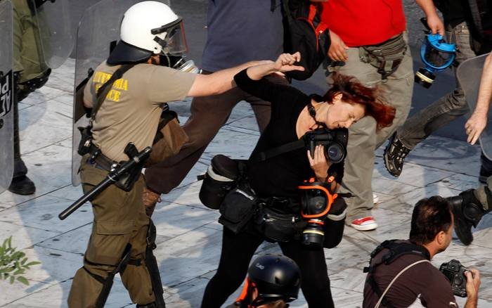 Νωρίτερα σήμερα, η φωτορεπόρτερ, που τραυματίστηκε στο λαιμό, κατέθεσε μήνυση στην Γενική Αστυνομική Διεύθυνση Αττικής.