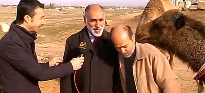 Την ώρα που ο δημοσιογράφος είχε μπροστά του τους δύο άντρες, η μία εκ των δύο καμηλών που βρίσκονταν λίγο πιο πέρα, ακούμπησε μαλακά στο λαιμό του ενός, ενώ όταν εκείνος προσπάθησε να την αποτρέψει ευγενικά, εκείνη του έδειξε ότι δεν το βάζει εύκολα κάτω...