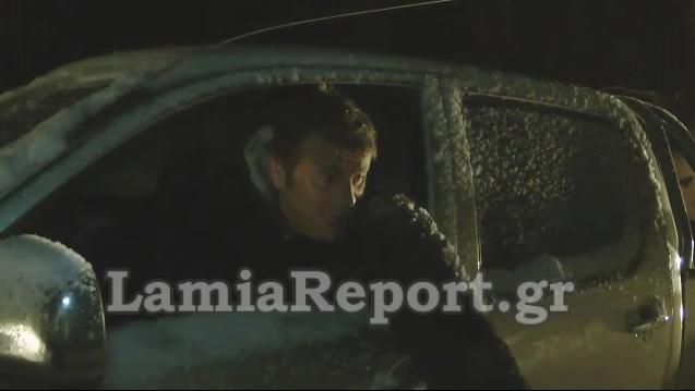 Ο Δημήτρης Κωνσταντόπουλος με τον Βαγγέλη Κουμπουρλή (στην κάμερα) κατάφεραν με δυσκολία, αφού σε πολλά σημεία ο δρόμος ήταν παγωμένος, να φτάσουν στο σημείο την ώρα της επιχείρησης.