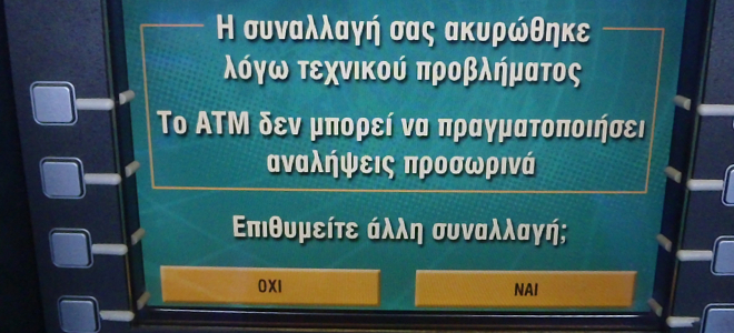 Τη Δευτέρα οι πολίτες πέρασαν ένα αρχικό σοκ, αφού προσπάθησαν να κάνουν ανάληψη και ενώ το ΑΤΜ δεν τους έδωσαν χρήματα, στη συνέχεια τους χρέωσαν τη συναλλαγή.