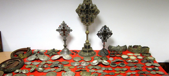 πολλά αρχαία αντικείμενα, ανάμεσα στα οποία και ένας εκκλησιαστικός