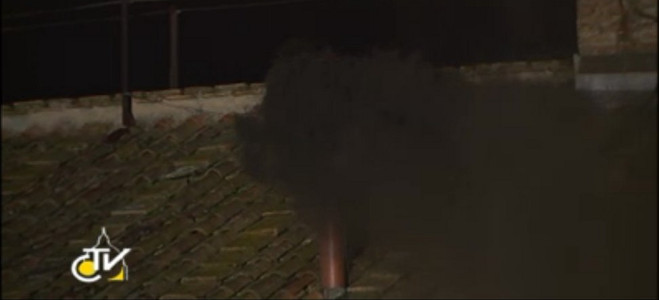 Μαύρος ήταν ο πρώτος καπνός που βγήκε το βράδυ της Τρίτης από την παραδοσιακή καπνοδόχο της Καπέλα Σιστίνα, στις 19:40 (ώρα Ιταλίας, 20:40 ώρα Ελλάδας), γεγονός που σημαίνει ότι οι πρώτες δυο ψηφοφορίες των εκλεκτόρων δεν είχαν το επιθυμητό αποτέλεσμα.
