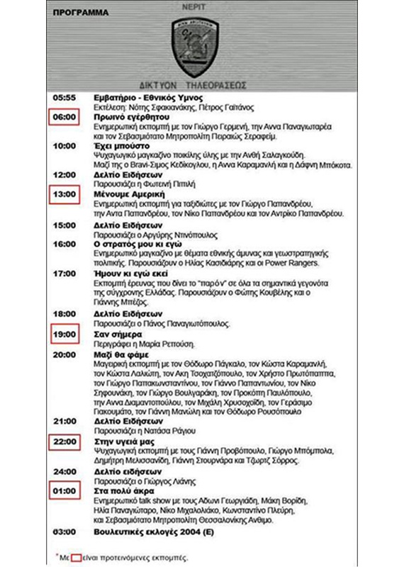 Ετσι, το γύρο του διαδικτύου κάνει ένα άκρως φανταστικό πρόγραμμα, που εκκινεί με τον Εθνικό Υμνο σε εκτέλεση Πέτρου Γαϊτάνου και Νότη Σφακιανάκη και ολοκληρώνεται με την επανάληψη των βουλευτικών εκλογών του 2004!