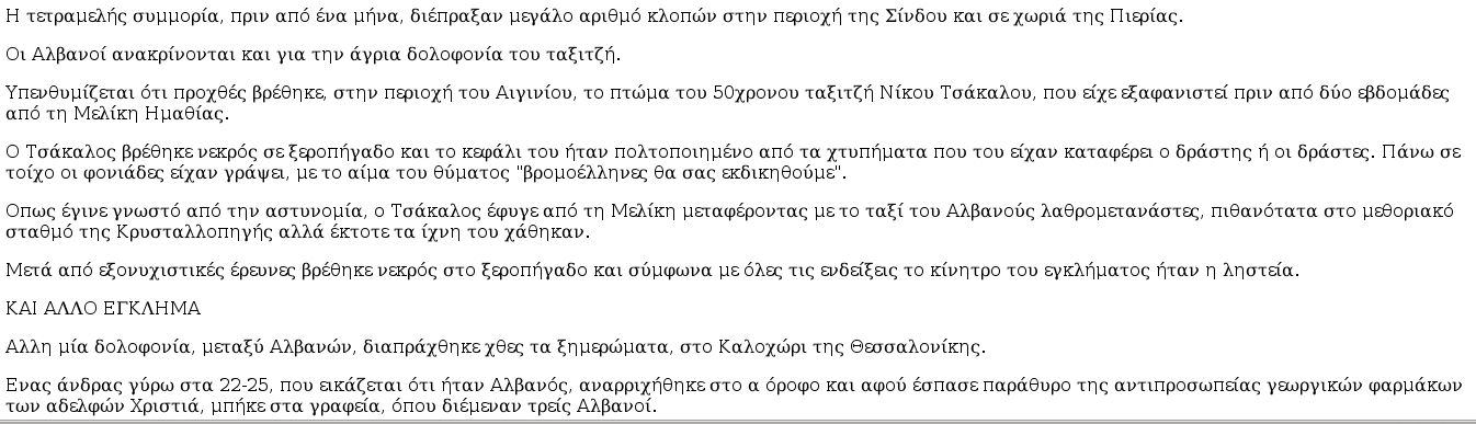 ΚΑΙ ΑΛΛΟ ΕΓΚΛΗΜΑ (το δημοσίευμα της δολοφονίας του Αλβανού από τον Κόλα)